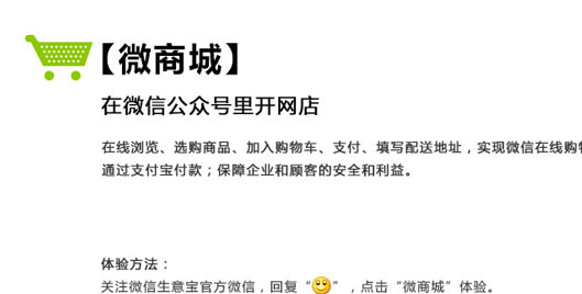 “微商城”(又名Vshop)是由上海晖硕信息科技有限公司推出的,一款基于移动互联网的商城应用服务产品,以时下最热门的互动应用微信为媒介,配合微信5.0微信支付功能,实现商家与客户的在线互动,即时推送最新商品信息给微信用户,实现微信在线的购物功能。其主要功能包括:支持商品管理、支持会员管理、支持购物车、支持商品分类管理、支持订单管理、支持店铺设置、支持支付方式管理、支持配送方式管理。