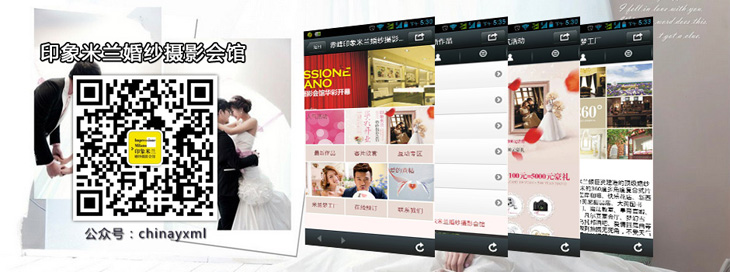 印象米兰婚纱摄影会馆1500平米营业空间功能完备,涵盖了各种功能区域,并引进了“米兰”皇家礼服体验馆、嫁衣馆、香港“吉婚坊”男士礼服定制馆;众多的知名婚纱、礼服品牌入店,力求为新人提供专属的奢华嫁衣、礼服,让新人穿着最美丽的嫁衣走进神圣的婚礼殿堂